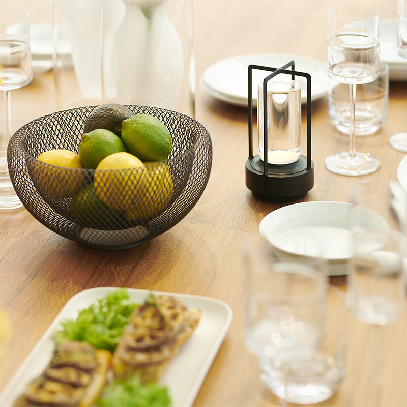 ライトはキャンドルのような小さな灯火から、食事を愉しむことができる光、テーブルの上部を照らす光、部屋に明るさを足してくれる4段階の調光が可能です。