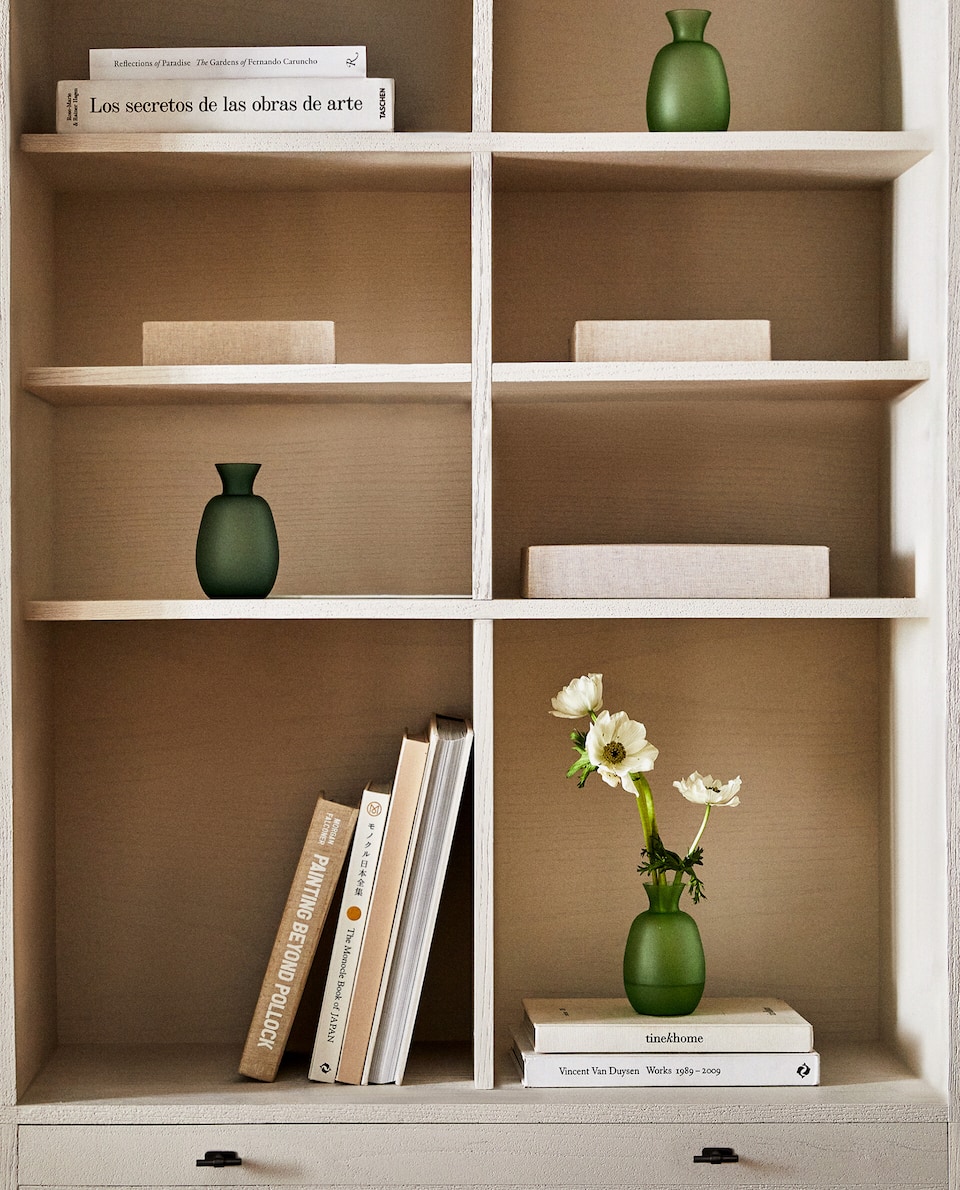 本を置かず直に花器を置いてしまったら、余白が出すぎてポツンと感がありますよね。